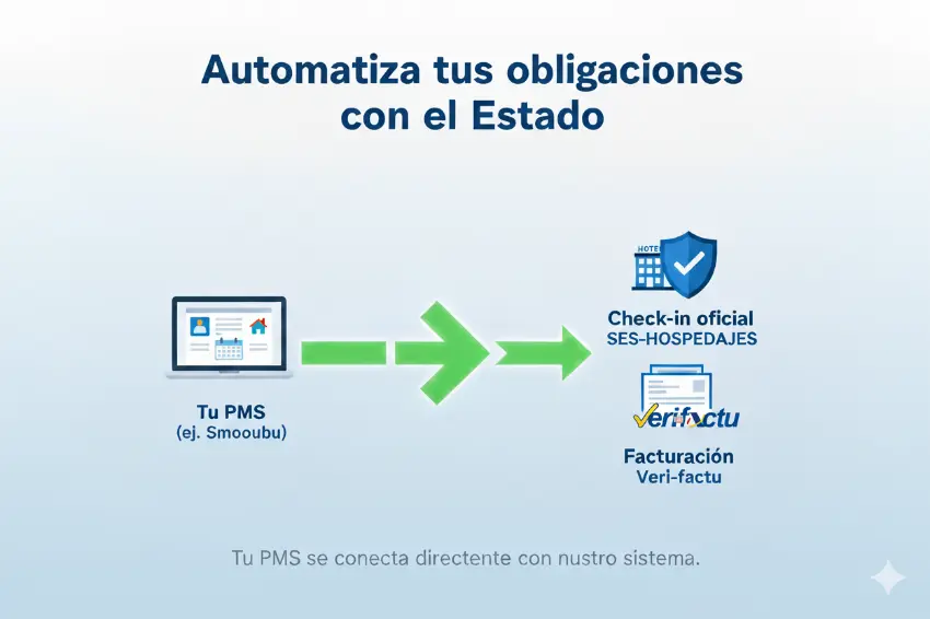 Conecta automáticamente tus reservas, huéspedes y datos fiscales.